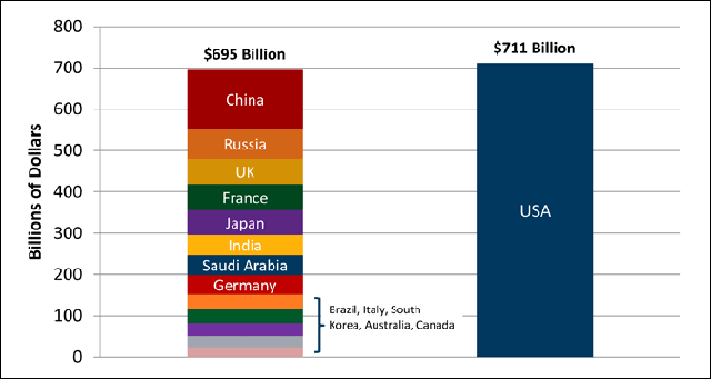 We currently spend more on defense than the next 13 countries combined. Defense spending accounts for about 30 percent of all federal spending — nearly as much as Social Security, or the combined spending for Medicare and Medicaid. The sheer size of the defense budget — $680 billion in the current fiscal year — suggests that it should be part of any serious effort to address America's long-term fiscal challenges.